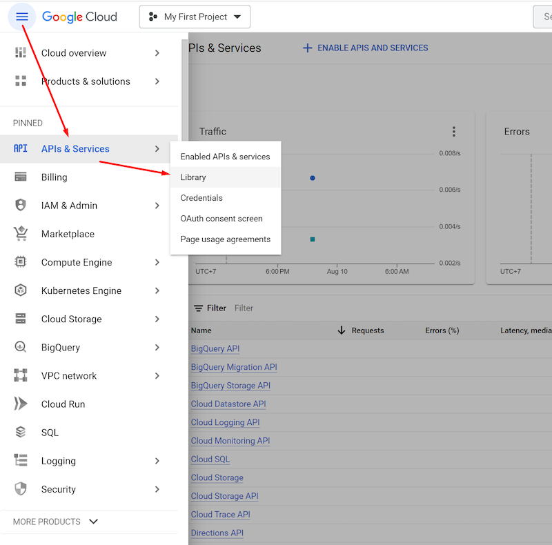 * Select the menu button, then navigate to **APIs and services**.
